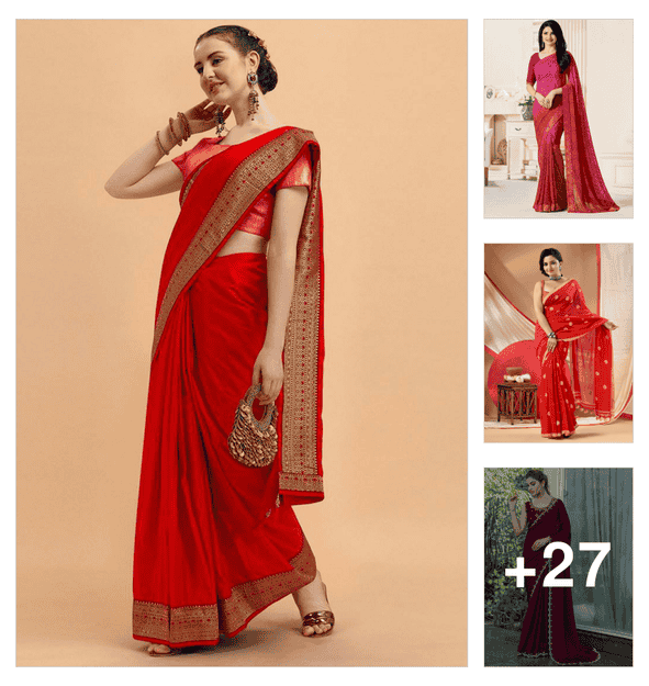 red plain saree silk