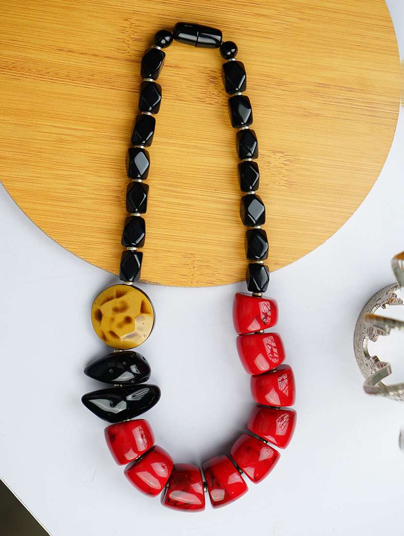 Red,Black & Brown Ethnic Tribal handmade Resin Beaded fashion Necklace