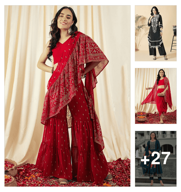 red plazo set