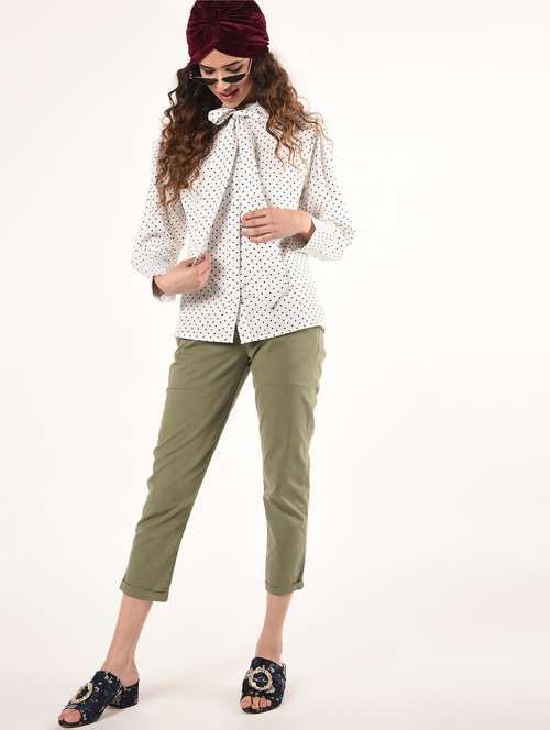 - » women white printed tie-up neck top