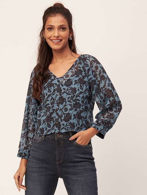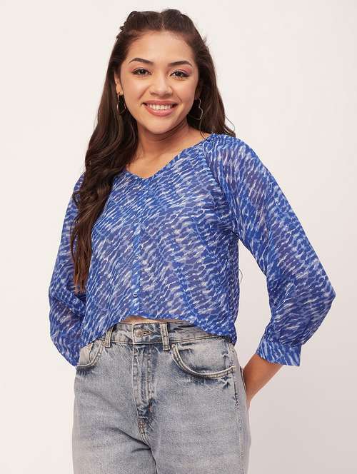 - Opt for this top made up of poly georgette material and get it in a varied neck design.