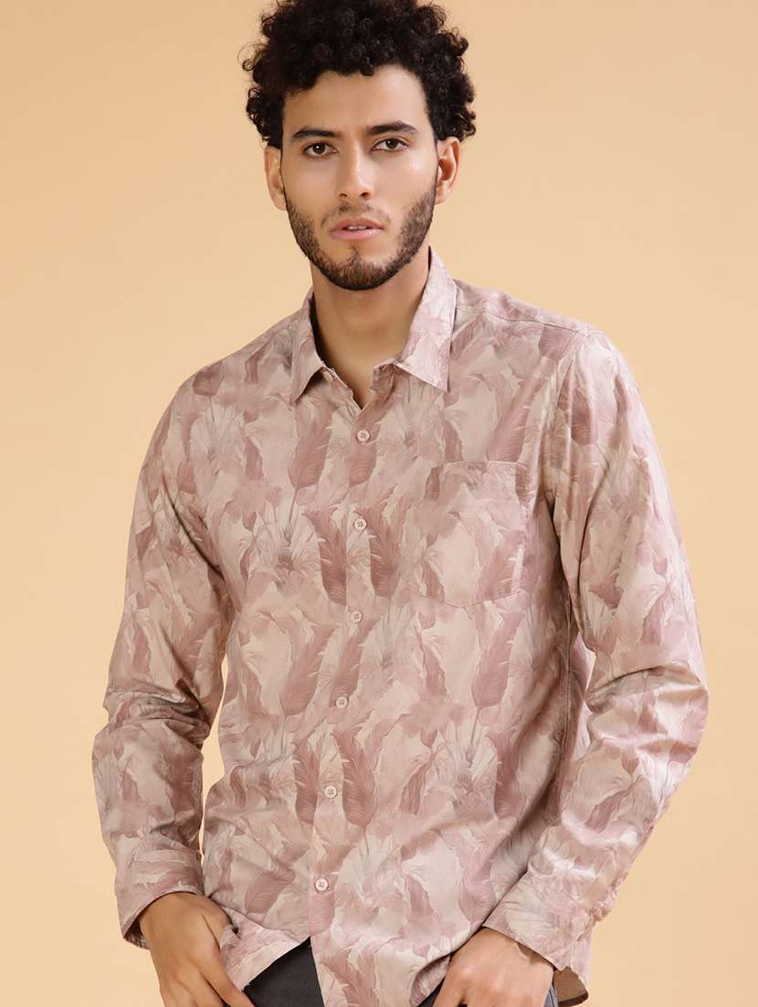 - » men printed collared long sleeve shirt