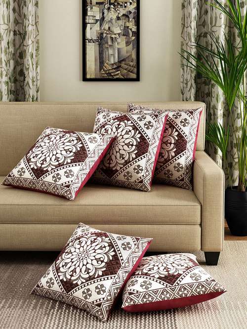 set of 5 polyester floral designed cushion covers - 14113171 - Very Small Image - 1