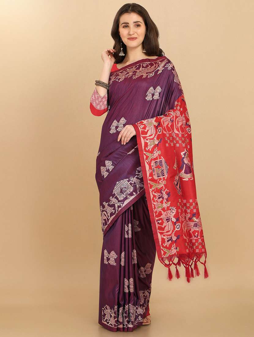 - » purple self design woven saree with blouse