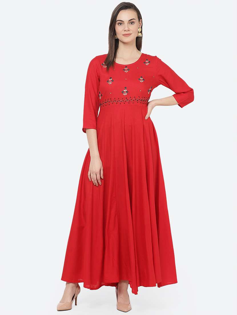 - » red rayon fit & flare ethnic dress