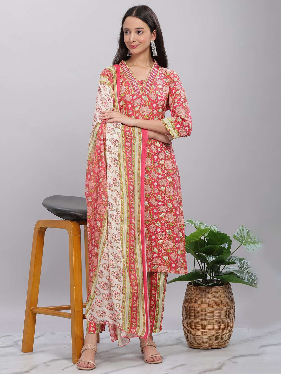 - Find gorgeous sets of ethnic wears in trending designs in pink colors suitable for casual wear of occasions.