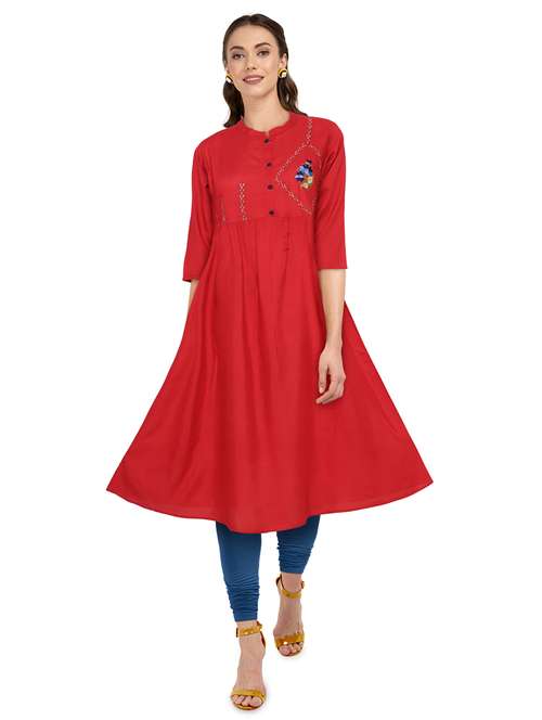 embroidered flared kurta - 17147359 - Very Small Image - 1