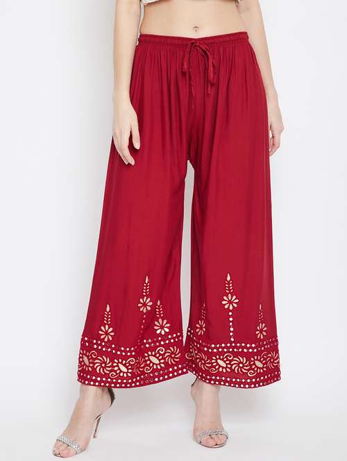 - Can’t do without fancy palazzos? Well, get them at LimeRoad from Clora Creation and in maroon colours.