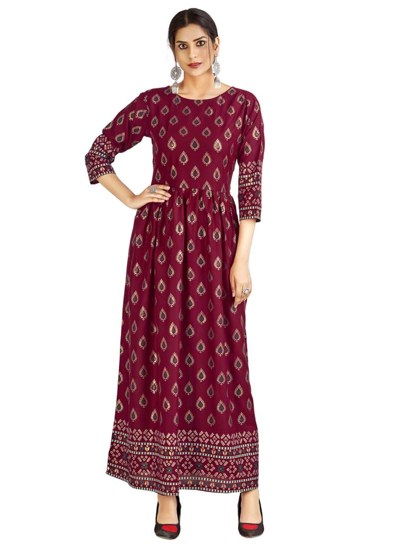 - These attractive gowns come in a-line made of rayon fabrics that can surely garner you lots of compliments when you wear it.