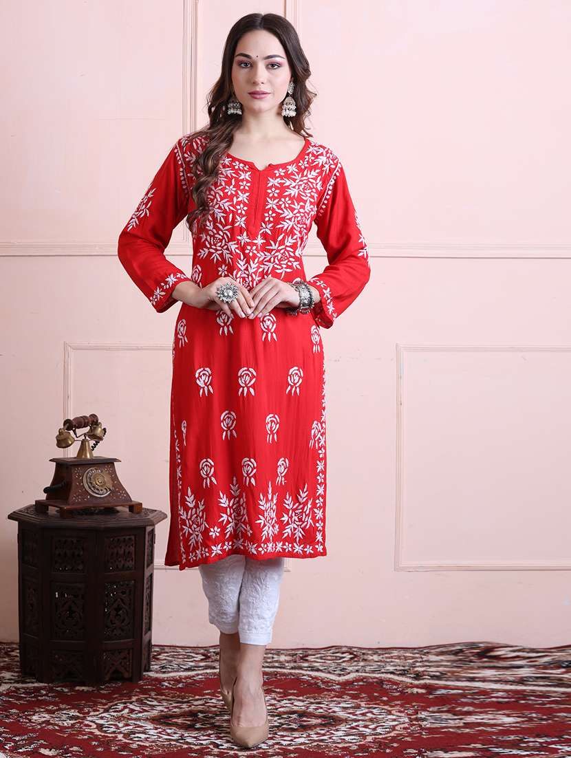 - » women solid with work chikankari straight kurta