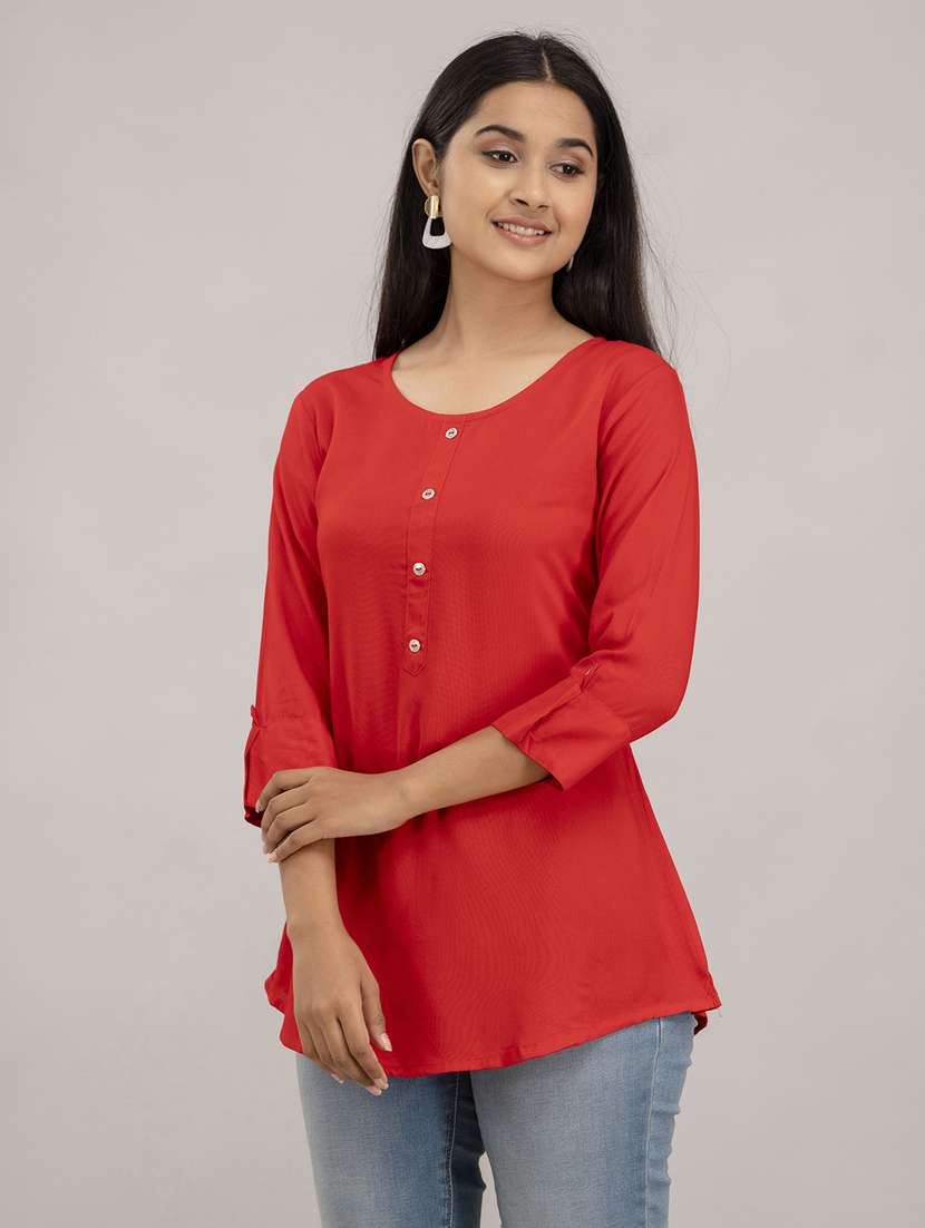 - Opt for this top made up of rayon material and get it in a varied neck design.