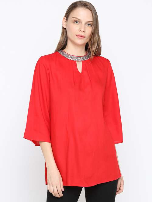 embellished key hole neck solid top  - 16378693 - Very Small Image - 1