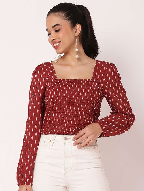*Includes:This clothing consists of 1 top (any accessories worn by the model are not for sale)*Material:Rayon Slub*Top Length:17 Inches (approx.)*Model Stats:The model in the image is 178 cm tall and bust 33 Inches is wearing size - (s) small*Features:Smocked, balloon sleeves, square neck, cropped size, light weighted and all over printed pattern*Care:Medium machine wash, warm iron, iron while damp. (after washing do not dry the fabric on high heat and do not dry fully. medium heat is best and removes just prior to being completely dry).*Size Information:Please refer to our size chart before making the purchase. if your size is in between two sizes, we recommend that you choose a larger size.