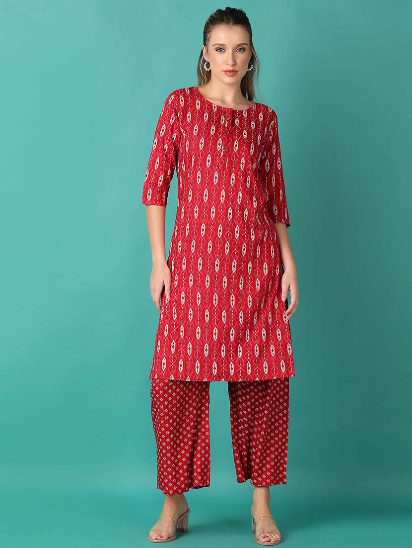 women red printed kurta palazzo set - 21509999 -  Standard Image - 1 women red printed kurta palazzo set - 21509999 -  Zoom Image - 1