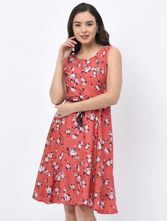 round neck floral belted dress  - 16982745 - Very Small Image - 1