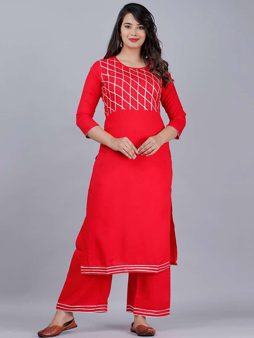 solid kurta palazzo set - 17369975 - Very Small Image - 1