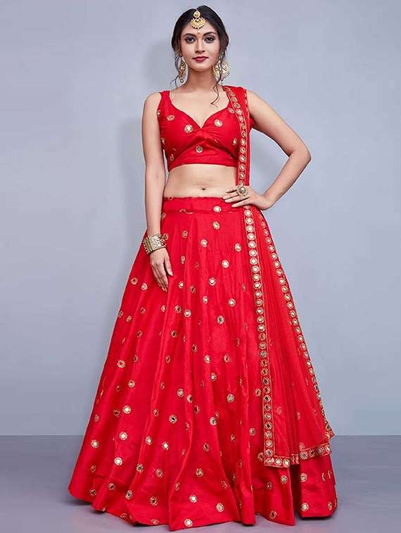 - » red embroidered flared lehenga