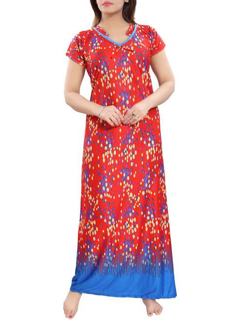 This Multicolor Serena Satin Night Gown from Be You is the ulimate blend of comfort & style. br The nightgown has dotted prints, designer neck and half sleeves. br Size: Free (comfort fit to bust 32-38 inches) br Length: Full (approx 55 inches) br Sales Package: 1 nightgown
