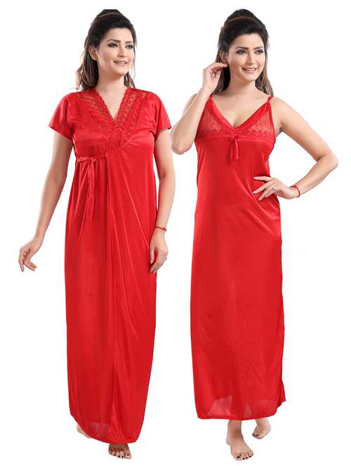 • After a long tiring day, slip into something homely, shop for the all-new collection of nightwear sets for ladies in FREESIZE sizes and gorgeous red designs and colors.