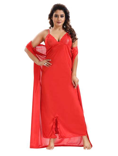 - » be you solid red satin 6 piece nightwear set (1 robe, 1 nighty, 1 top, 1 patiyala, 1 lingerie set) for women