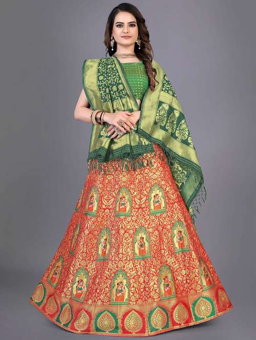- Are you ready to adorn some alluring lehengas this season? Well, gear up to look gracious as LimeRoad brings to you the most magnificent collection of lehengas from RUJAVE and in red colours.