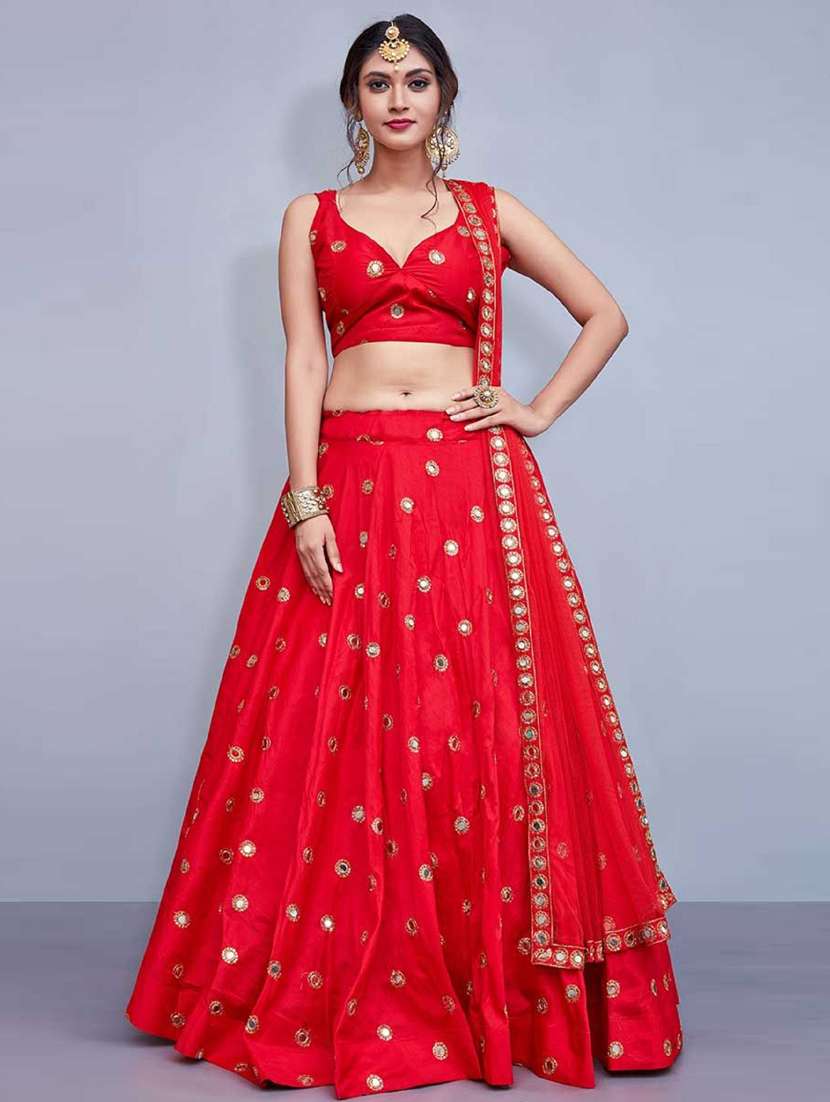 - » red satin flared lehenga