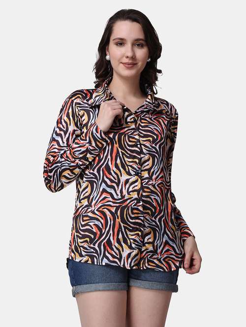 - » women printed collared long sleeves shirt