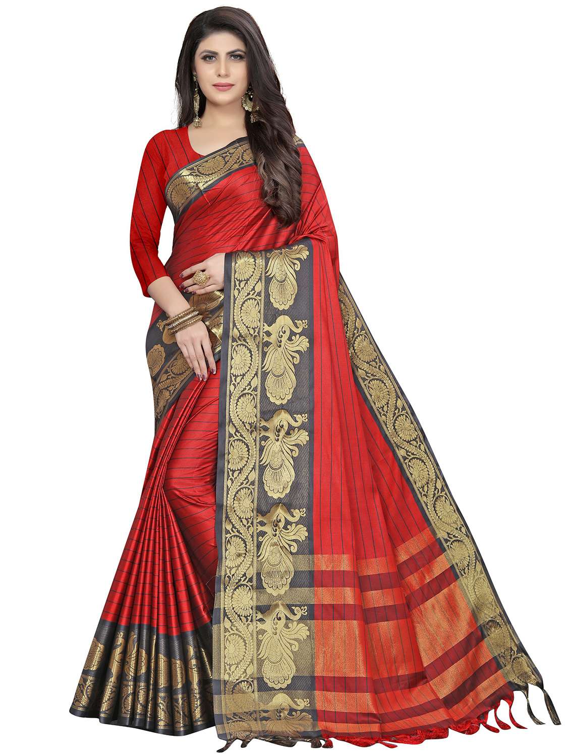 - » women's self design red colored saree