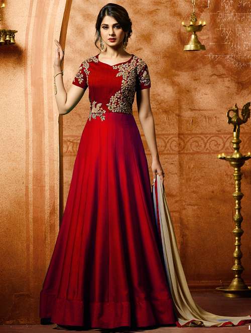 embroidered semi-stitched anarkali suit - 15354182 - Very Small Image - 1