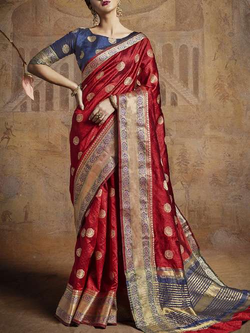contrast striped pallu banarasi saree with blouse