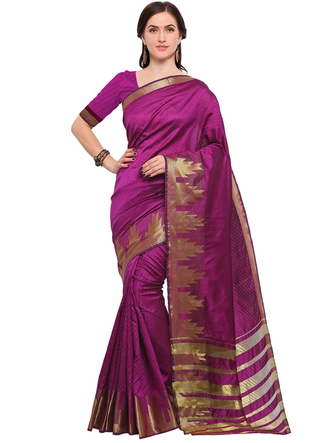 - » purple silk blend woven saree with blouse
