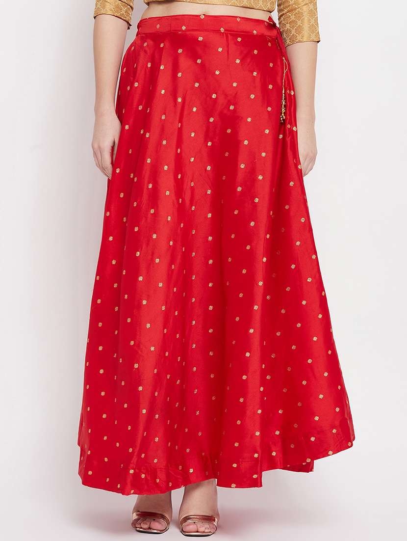 - » red self design flared maxi skirt