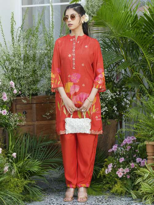 - » women floral print three quarter sleeve ethnic co-ord set