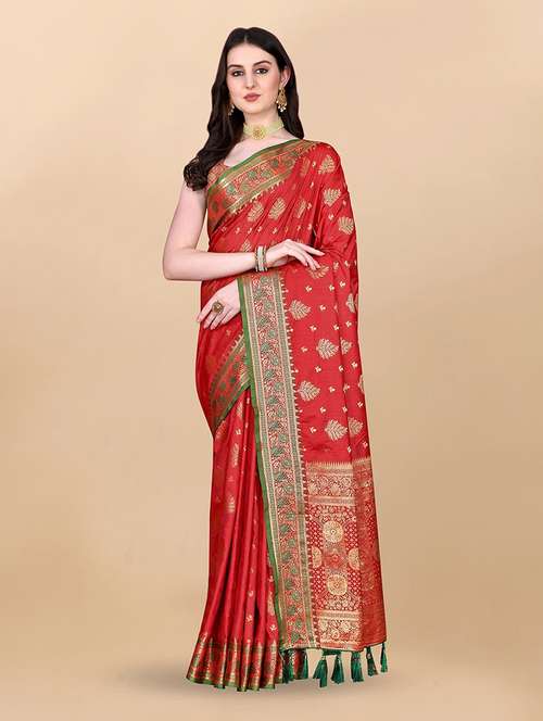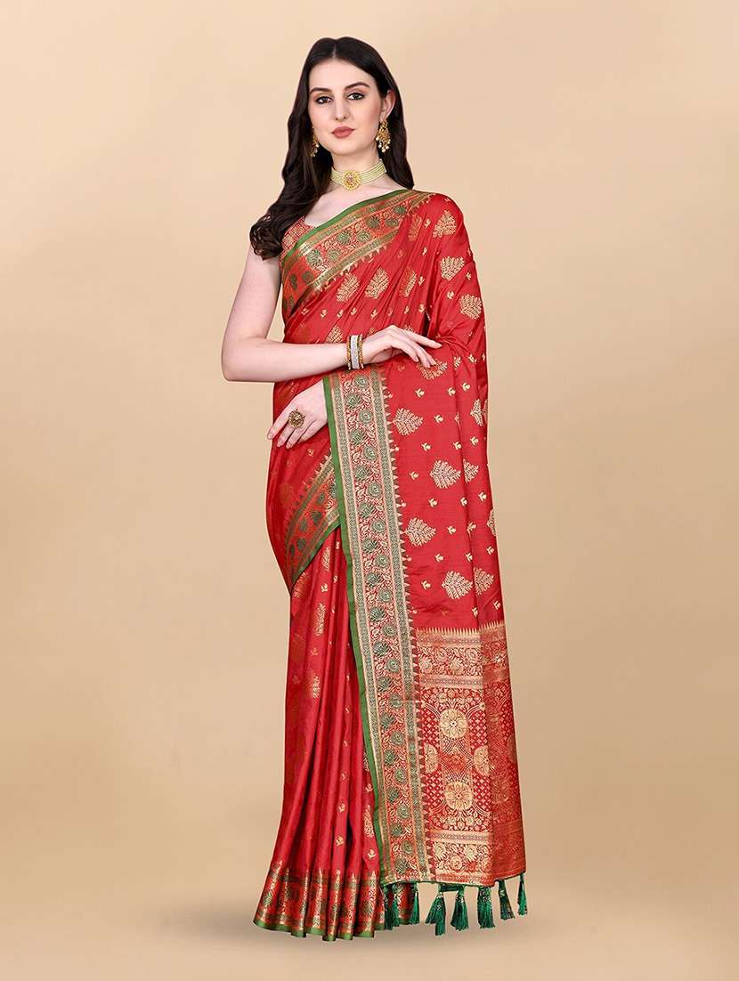 - » women's self design red colored saree with blouse