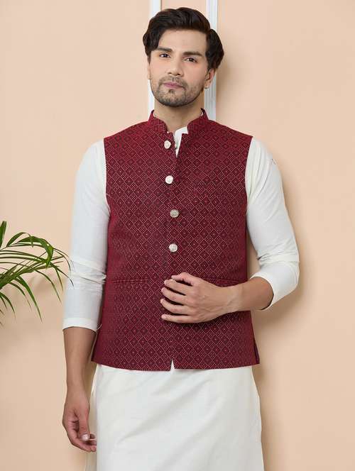- Look stylish and confident in See Designs brands with red Nehru jackets in which you will feel your best.