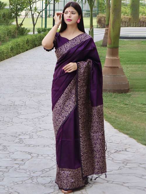 women solid with bordered saree with blouse - 21854462 -  Standard Image - 1 women solid with bordered saree with blouse - 21854462 -  Zoom Image - 1
