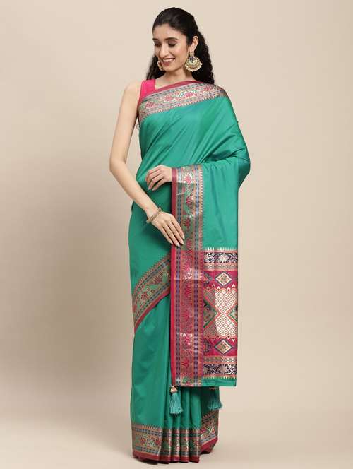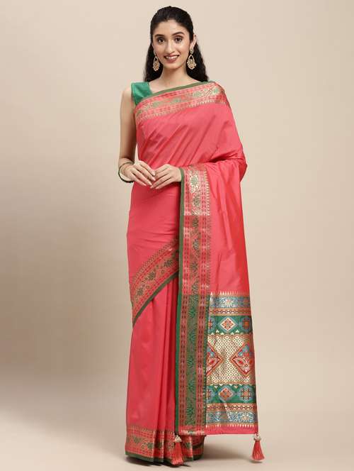 Grace meets tradition in this striking Red saree featuring an intricately woven red and gold border, paired with a rich ethnic pallu. The deep color gives a royal, slimming effect while the ornate motifs elevate its festive elegance. Crafted for modern women who cherish classic beauty, this saree is a perfect choice for wedding functions, festive occasions, or formal celebrations.