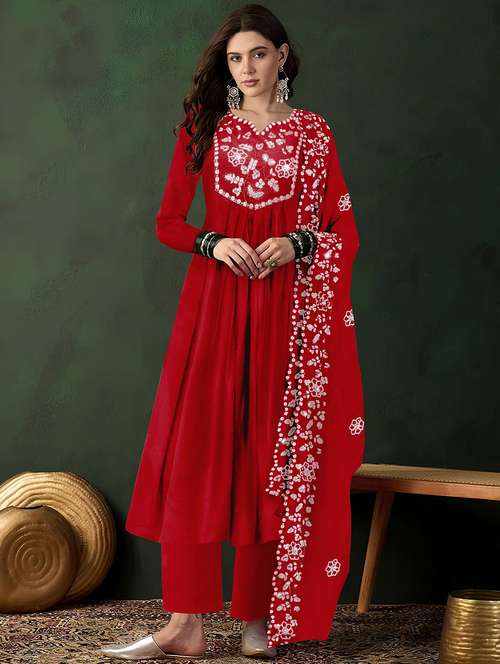 - » women solid with work long sleeve kurta pant with dupatta set
