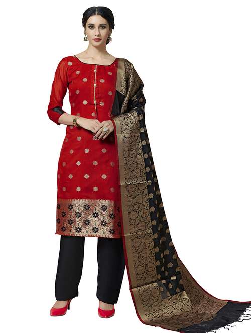 - Look ultra gorgeous in unstitched suits from Manvaa and grab these beautiful suits in red colour.