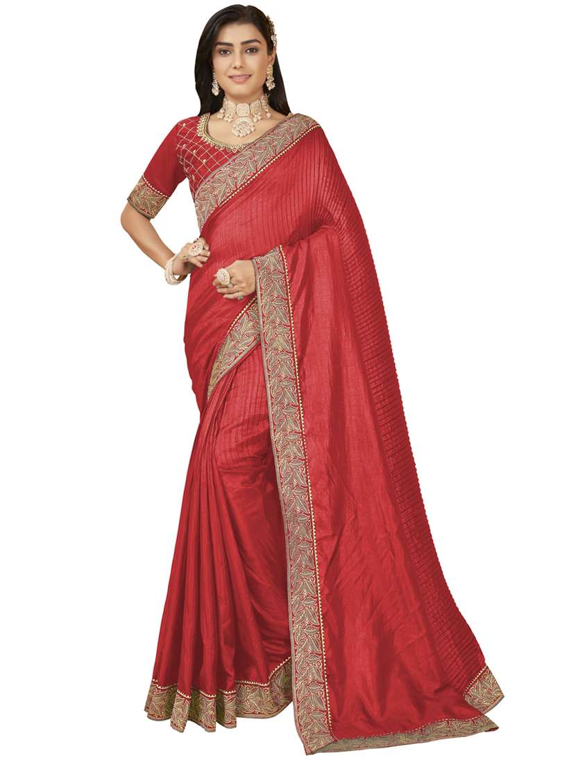 - » red colored bordered saree with blouse