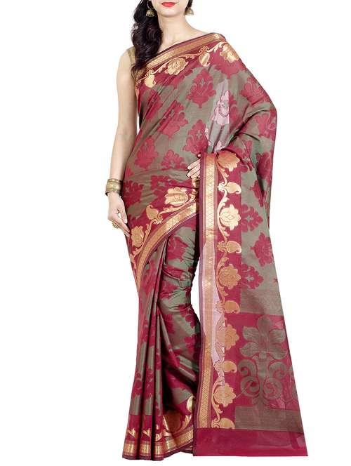 zari paisley border woven saree with blouse