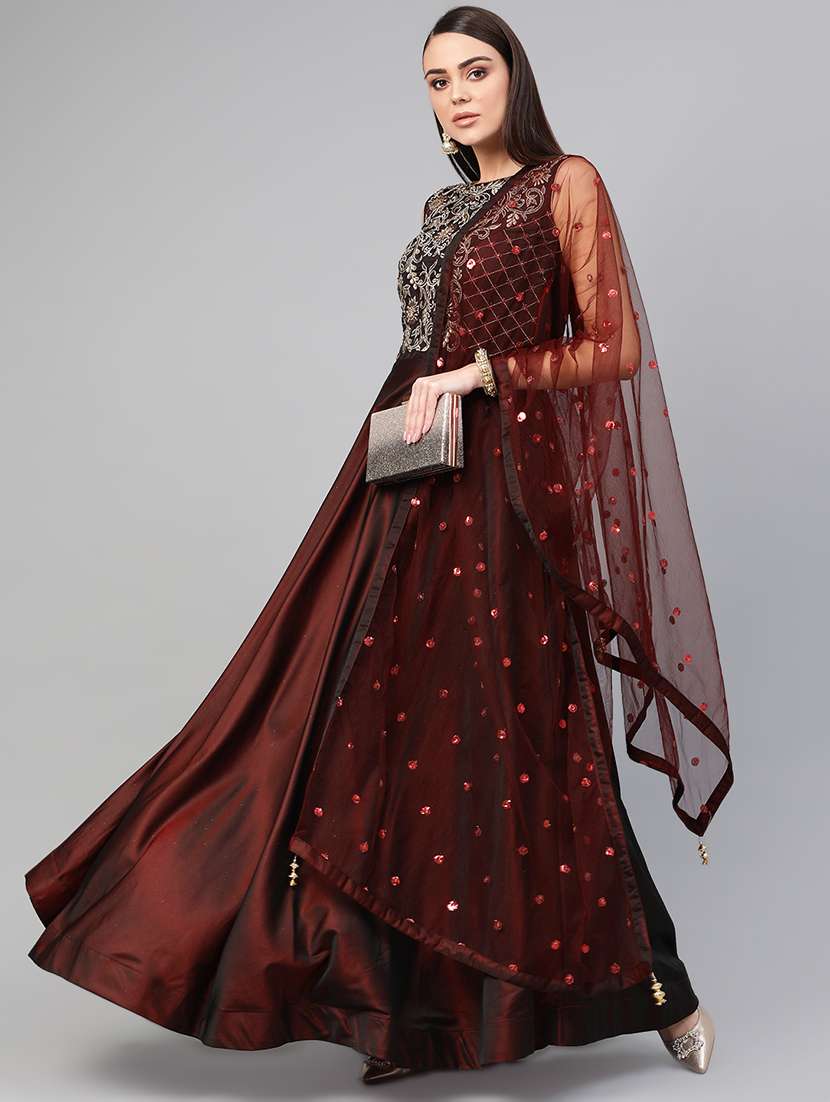 embellished silk flared gown