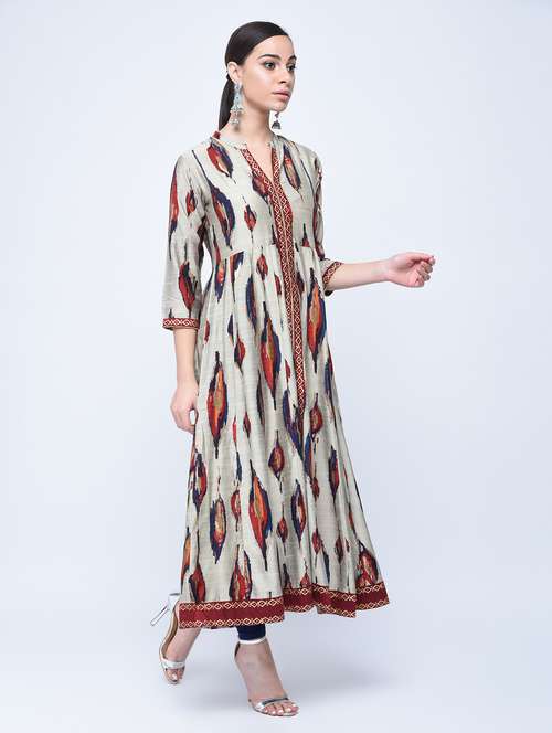 silk anarkali ikat print kurta
