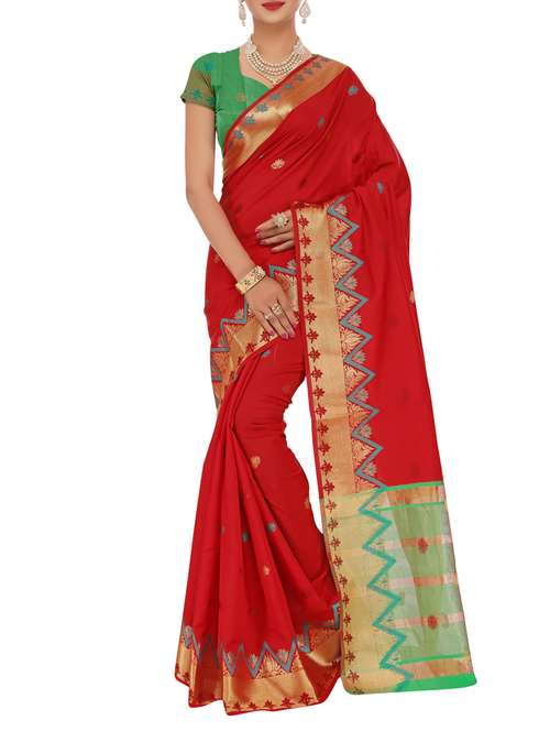 - » red silk banarasi saree with blouse