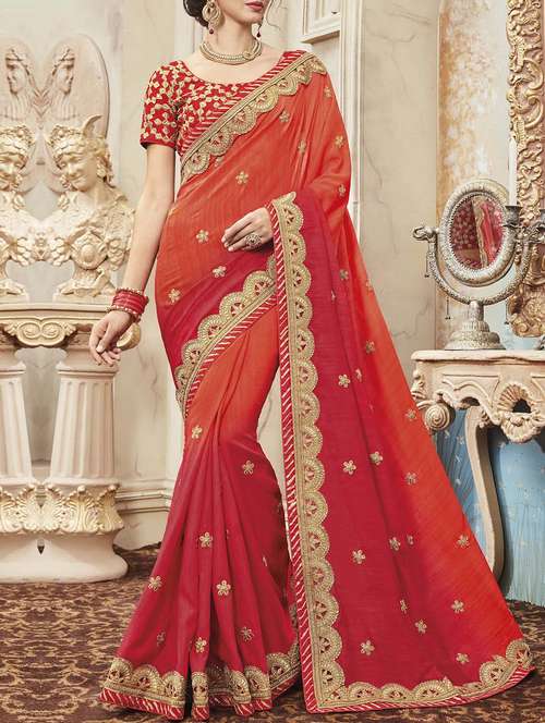 - » orange embroidered saree with blouse