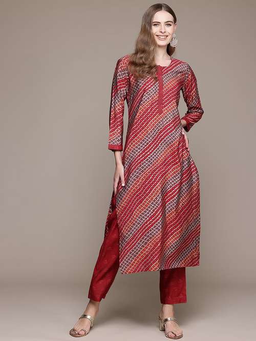 - Find gorgeous sets of ethnic wears in trending designs in red colors suitable for festive wear of occasions.