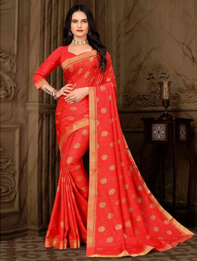 - » red printed saree with saree