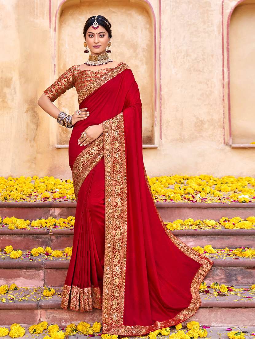 - » red solid saree with blouse