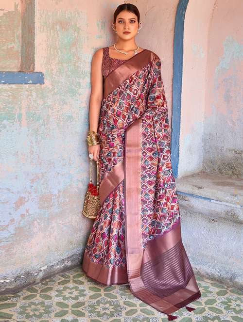 contrast bordered woven saree - 19529409 - Very Small Image - 1