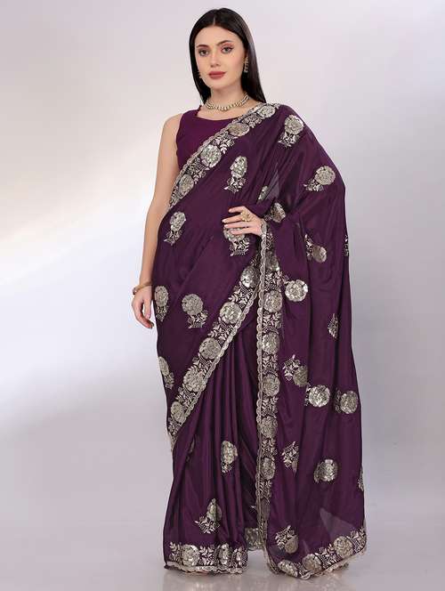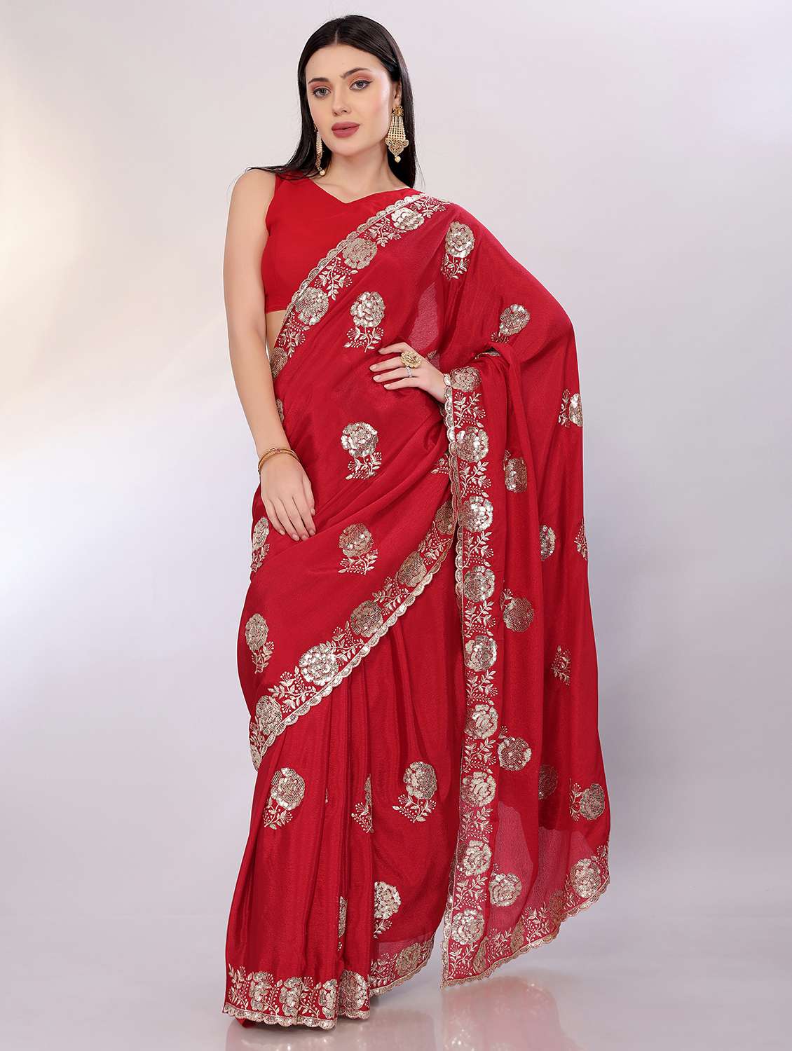 Vairagee Chinon Silk Embroidery Saree & Chinon Silk Blouse